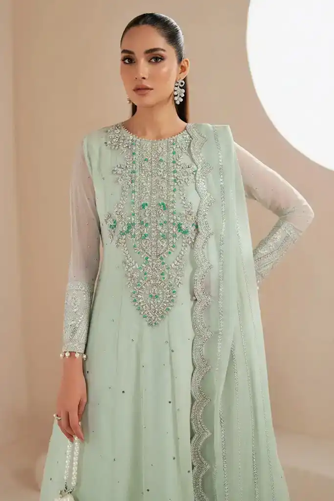 Stitched includes Shirt, Lining, Dupatta and Trouser all embellished as shown in pictures.