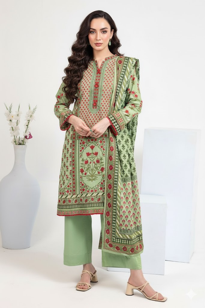 Product Description Printed Lawn Dupatta – 2.5 Meters Printed Lawn Shirt – 1.75 Meters Dyed Trouser – 1.75 Meters
