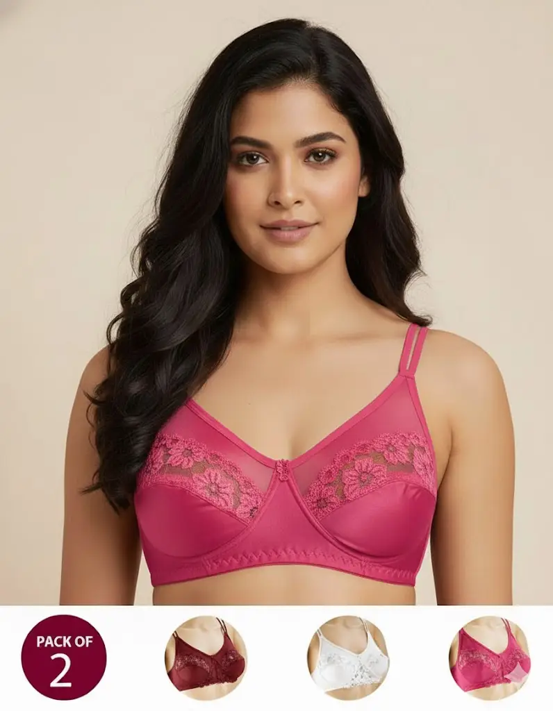 Pack of 2 – Madam Bra – BOE – Non Padded, Non Wired Bra, Soft Jersey Cotton Lace Bra